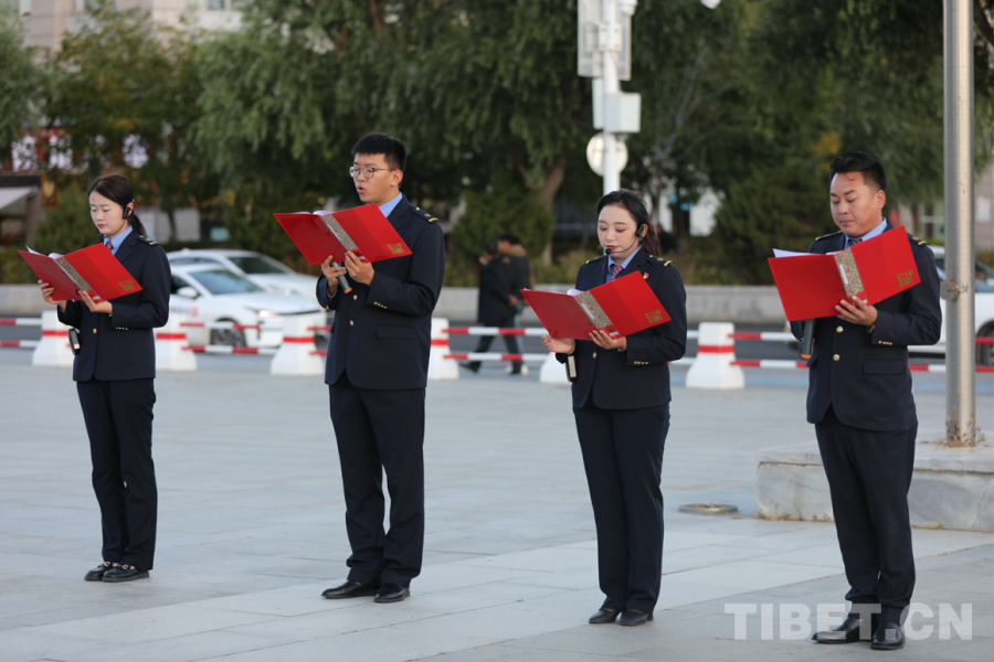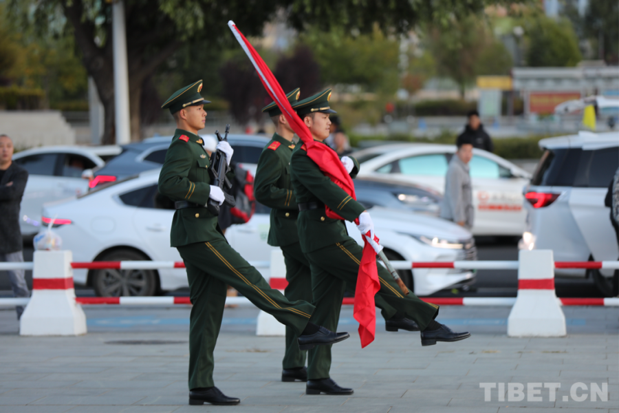 中國西藏網(wǎng)訊 在新中國成立75周年這一榮耀時(shí)刻,拉薩火車站舉行了一場(chǎng)莊嚴(yán)而隆重的升國旗儀式。10月1日上午8時(shí)整,雄渾的國歌聲奏響,駐站武警儀仗隊(duì)邁著整齊劃一的步伐,護(hù)衛(wèi)著五星紅旗走向國旗基座。在火車站干部職工的凝視下,五星紅旗冉冉升起,那是祖國繁榮昌盛的象征。