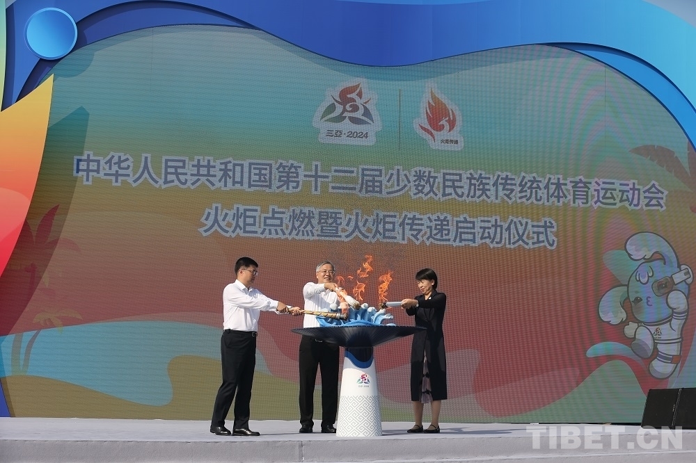 中國(guó)西藏網(wǎng)訊 10月9日,中華人民共和國(guó)第十二屆少數(shù)民族傳統(tǒng)體育運(yùn)動(dòng)會(huì)(以下簡(jiǎn)稱運(yùn)動(dòng)會(huì))火炬點(diǎn)燃暨火炬?zhèn)鬟f啟動(dòng)儀式在海南省三亞市天涯海角舉行。采集自海南熱帶雨林國(guó)家公園的“生態(tài)之火”、航行海洋之中“探索二號(hào)”科考船的“科技之火”、崖州灣國(guó)家南繁科研育種基地的“希望之火”同頻共燃,匯聚成象征中華民族一家親、同心共圓中國(guó)夢(mèng)的“同心之火”,表達(dá)著全國(guó)各族人民攜手并肩、共同邁向美好未來(lái)的堅(jiān)定決心。