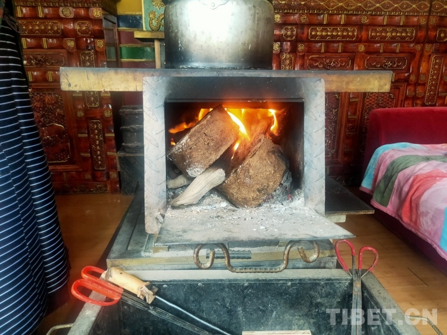 圖為次央白宗給爐子添火 攝影:周晴晴