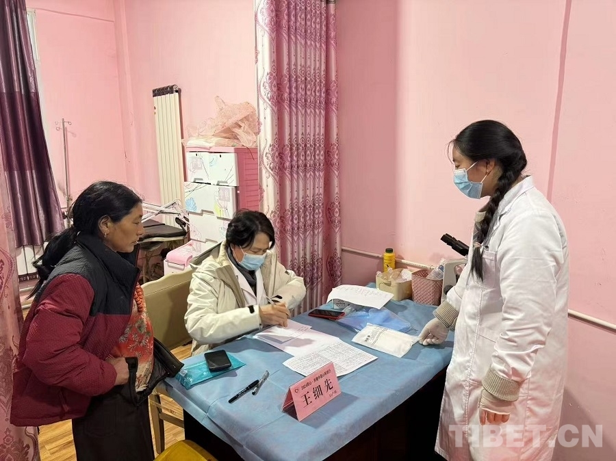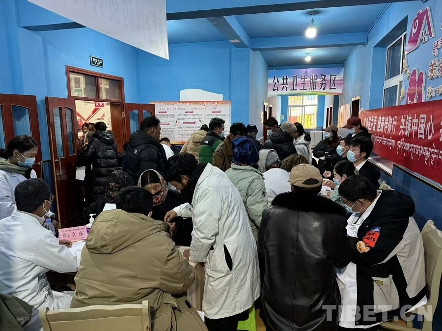 義診中,室外大雪紛飛,寒意襲人,專家團(tuán)隊(duì)卻熱情高漲,克服著自身的高原反應(yīng),熱心、耐心地為當(dāng)?shù)厝罕娍丛\、開具處方和給予生活建議。當(dāng)?shù)厝罕姀臒崆衅谂伪本<业牡絹?,到按方領(lǐng)取同心·共鑄中國心活動(dòng)捐贈的對癥藥品滿意而歸,義診現(xiàn)場就是一場充滿熱情的雙向奔赴。(中國西藏網(wǎng) 記者/賈春玲)