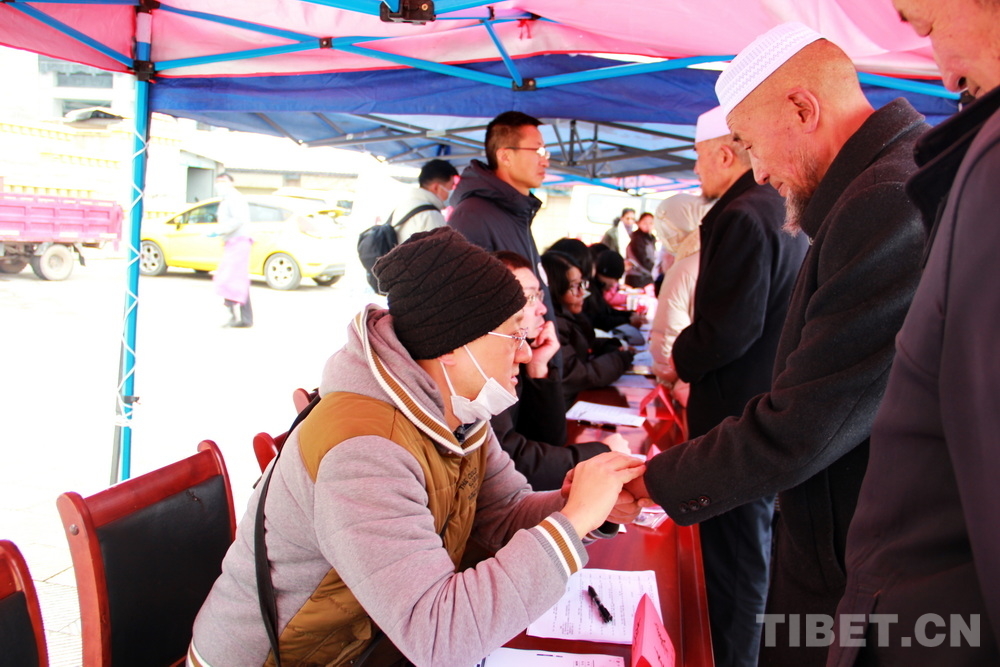 高原的大雪天,在室外即便來(lái)回走動(dòng)也感覺(jué)格外寒冷。前來(lái)問(wèn)診的患者絡(luò)繹不絕,醫(yī)務(wù)志愿者們堅(jiān)守崗位,身披雪花,腳踩積雪,在翻譯的幫助下不停接診,一坐就是大半天。有的醫(yī)務(wù)志愿者專心接診,渾然不知衣服上已經(jīng)積雪;有的醫(yī)務(wù)志愿者發(fā)現(xiàn)患者不太理解疾病的分科,就同時(shí)擔(dān)起了分診工作;有的醫(yī)務(wù)志愿者自身高反強(qiáng)烈,吸著氧也要堅(jiān)持接診……