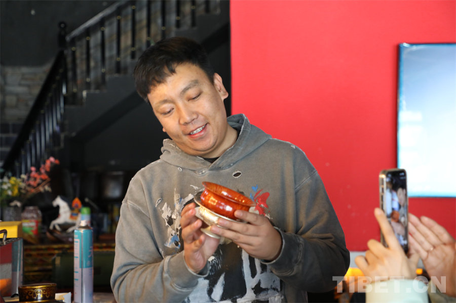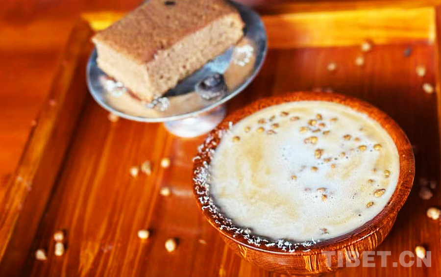 在濃郁的咖啡液里注入青稞奶,撒上當(dāng)?shù)禺a(chǎn)的酸酸的奶渣和青稞?!煌胂銤獾目Х韧瓿闪恕J堑?,是“一碗咖啡”,索朗群培專門選用了藏族群眾喜愛的傳統(tǒng)木碗用作咖啡杯。