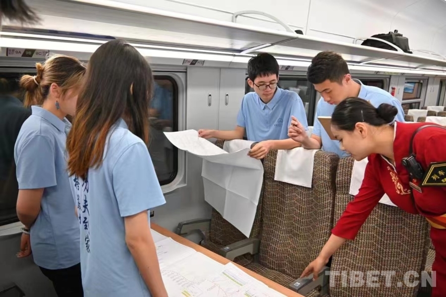 圖為工作室 “情系雪域高原 矢志復(fù)興偉業(yè)”實(shí)踐團(tuán)在拉林鐵路上開展實(shí)景思政