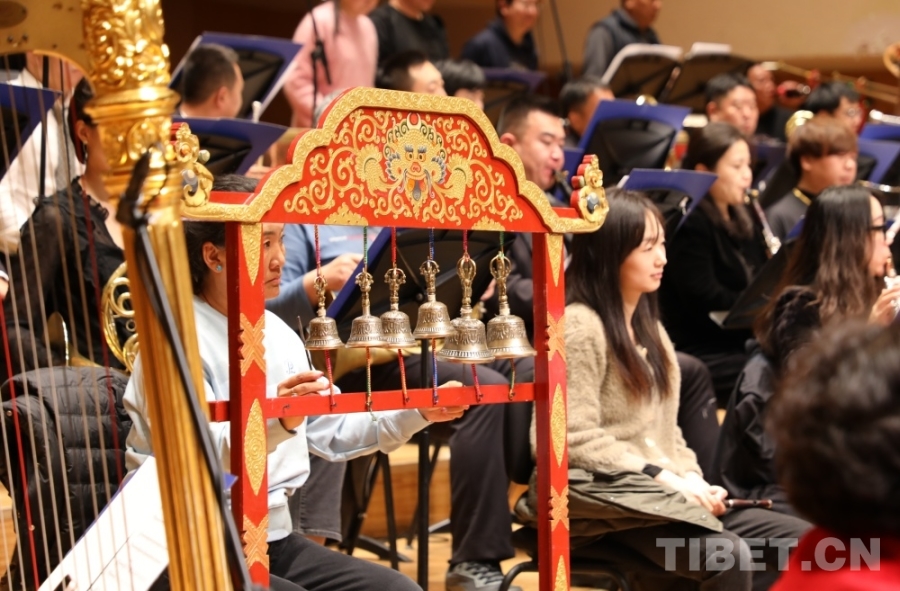“我們交響樂當中使用了不少民族樂器,有藏族的傳統(tǒng)樂器藏大號、藏鈸、扎木念、赤布(藏鈴),也有二胡、鼓、笛等等,這也使得作品跟其他樂團不一樣?!蹦岈斦f,“交響樂有了民族樂器的加入,這種中西結合讓作品國際范兒中有了民族風味,這也是我們所做的一些創(chuàng)新和融合,也展現(xiàn)了西藏音樂特有的魅力?!?/p>