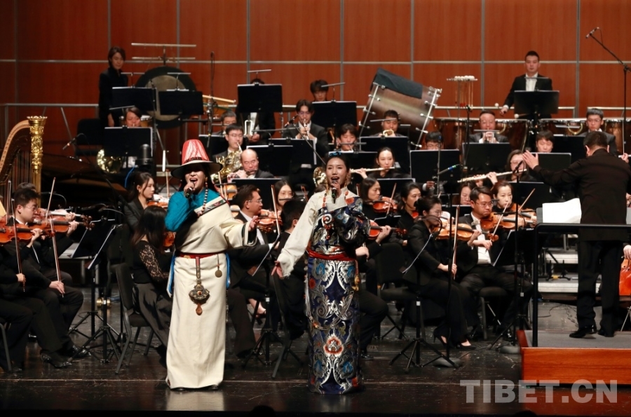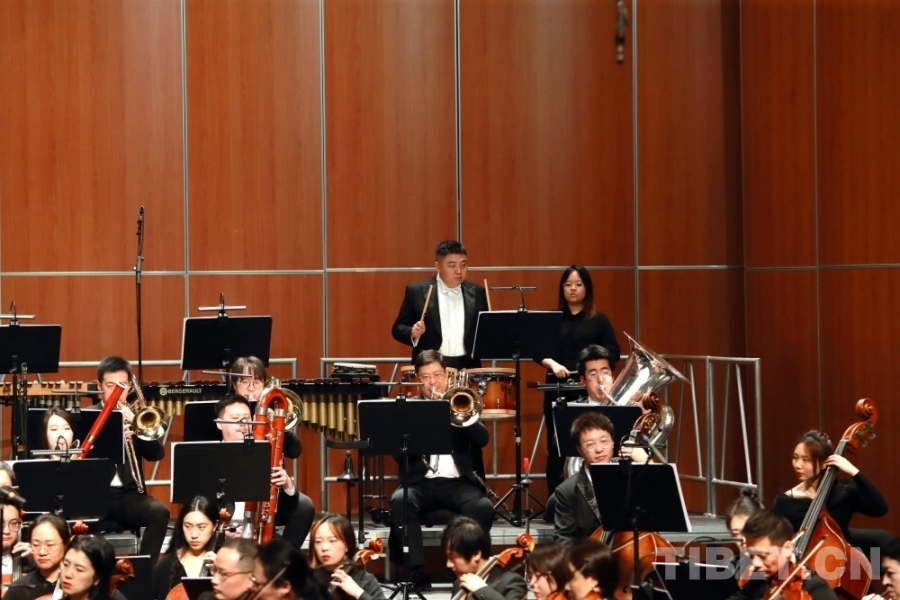 音樂(lè)會(huì)上,兩位藏族歌手演唱了交響樂(lè)主題曲《金橋》,歌曲高亢嘹亮、曲調(diào)悠揚(yáng)。藏戲、山歌等元素的加入,讓交響樂(lè)更加豐富,充滿(mǎn)了濃郁的民族風(fēng)情。