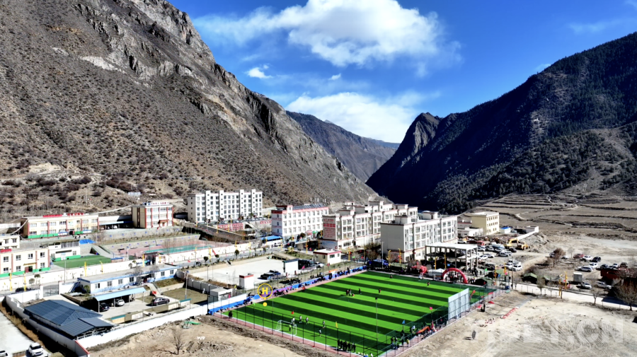 圖為位于西藏自治區(qū)昌都市洛隆縣達(dá)龍鄉(xiāng)的足球賽場(chǎng)