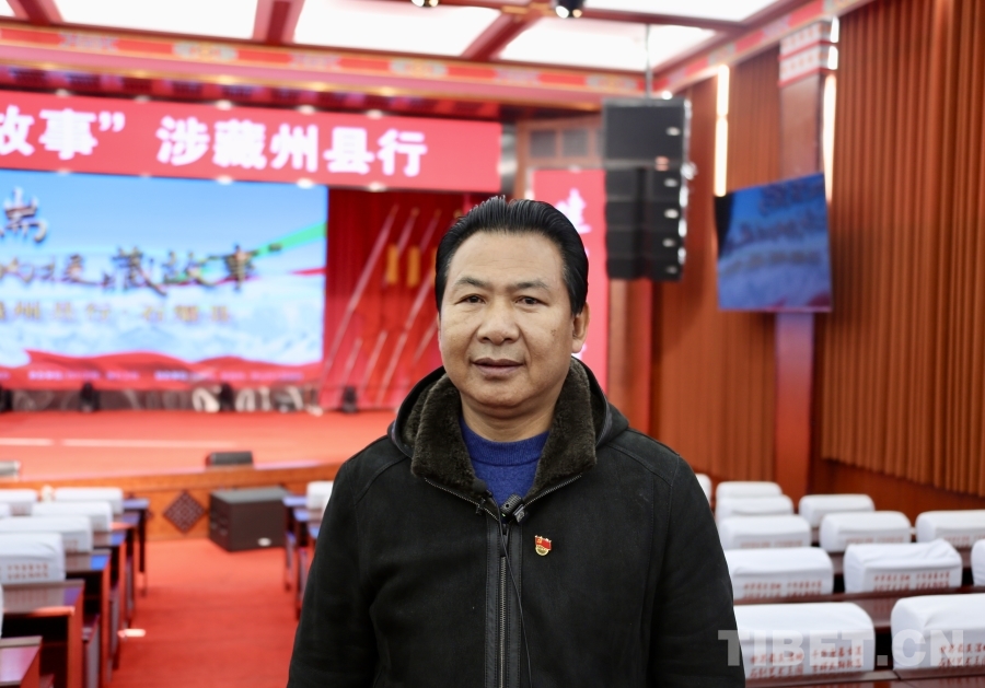 圖為石渠縣縣委常委、宣傳部部長(zhǎng)土登在接受記者采訪(fǎng) 攝影:龍真多吉