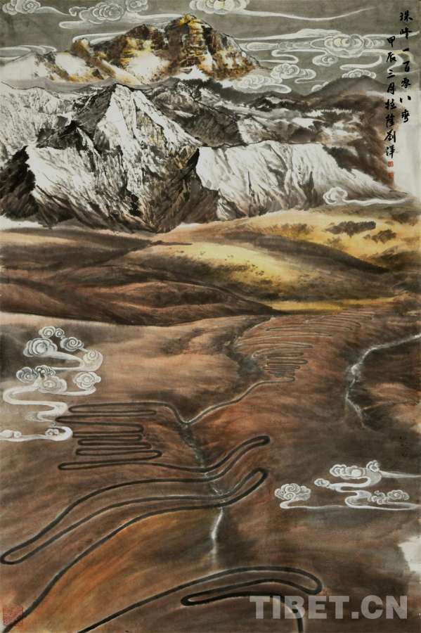 圖為劉洋繪畫(huà)作品《珠峰一百零八彎》