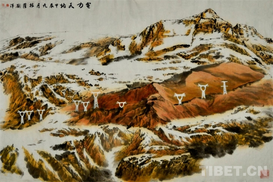 圖為劉洋繪畫(huà)作品《電力天路》