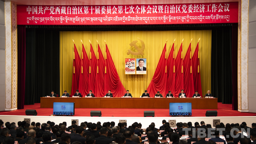 圖為中國共產(chǎn)黨西藏自治區(qū)第十屆委員會(huì)第七次全體會(huì)議暨自治區(qū)黨委經(jīng)濟(jì)工作會(huì)議現(xiàn)場 攝影:趙振宇