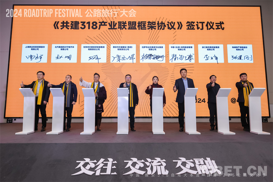 雅安市、甘孜州、昌都市、林芝市、拉薩市、山南市等318沿線的市州共聚一堂,圍繞“‘兩路’精神賦能,打造民族團(tuán)結(jié)示范走廊”的318主題展開交流發(fā)言,并宣讀《最美318 雅安到拉薩 文交旅商產(chǎn)業(yè)聯(lián)盟倡議書》,簽訂了《318民族團(tuán)結(jié)進(jìn)步聯(lián)盟協(xié)議》。