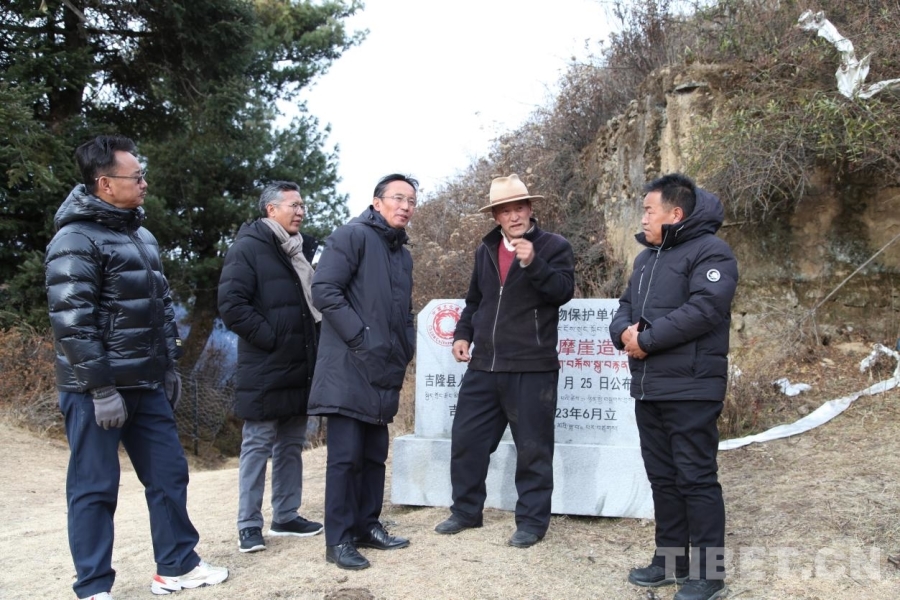 圖為圖登克珠在吉隆縣乃西村古崩摩崖造像調(diào)研 受訪者供圖