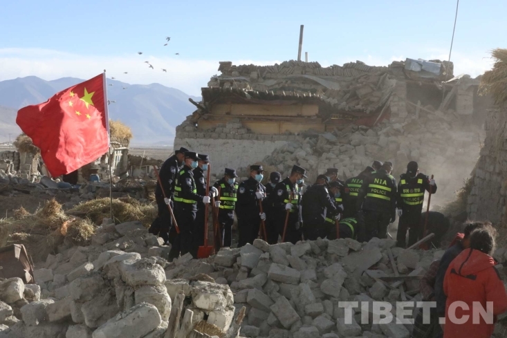 中國西藏網(wǎng)訊 1月7日9時5分,在西藏日喀則市定日縣措果鄉(xiāng)附近發(fā)生6.8級地震,震源深度10千米。西藏出入境邊防檢查總站移民管理警察在西藏日喀則市定日縣長所鄉(xiāng)玉白村參與救援及安置工作。五星紅旗之下,是國家對災(zāi)區(qū)群眾的守護,亦是災(zāi)區(qū)群眾對黨和國家救援力量的期盼。有五星紅旗的地方就有信念的燈塔,這是災(zāi)區(qū)一線的守望?。ㄖ袊鞑鼐W(wǎng) 通訊員/郭遠(yuǎn)敬)