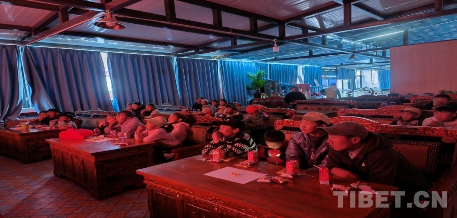 圖為西藏自治區(qū)日喀則市定結縣江嘎鎮(zhèn)芒熱村安置點的小朋友們在看電影