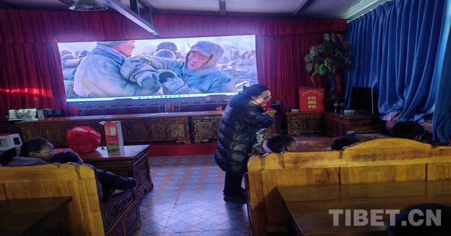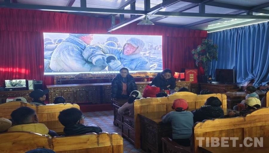 中國西藏網(wǎng)訊 “等我長大了,我也要保衛(wèi)祖國?!薄拔蚁胂衲倪敢粯訁柡??!苯?,在西藏自治區(qū)日喀則市定結縣江嘎鎮(zhèn)芒熱村,駐村工作隊的年青人們?yōu)榇謇锇仓命c的小朋友們播放了《八佰》和《哪吒之魔童降世》兩部電影,小朋友們看得津津有味。
