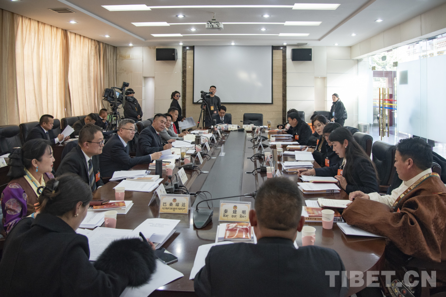 圖為政協(xié)第十二屆西藏自治區(qū)委員會(huì)第三次會(huì)議工商聯(lián)合會(huì)界別委員小組討論會(huì)現(xiàn)場(chǎng)(攝于1月19日) 攝影:趙振宇