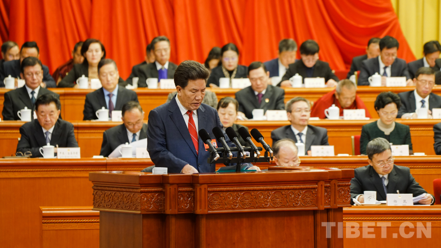 中國西藏網(wǎng)訊 1月20日,西藏自治區(qū)第十二屆人民代表大會第三次會議舉行第二次全體會議,全國人大常委會副委員長、西藏自治區(qū)人大常委會主任洛桑江村受西藏自治區(qū)人大常委會委托,作西藏自治區(qū)人民代表大會常務委員會工作報告。