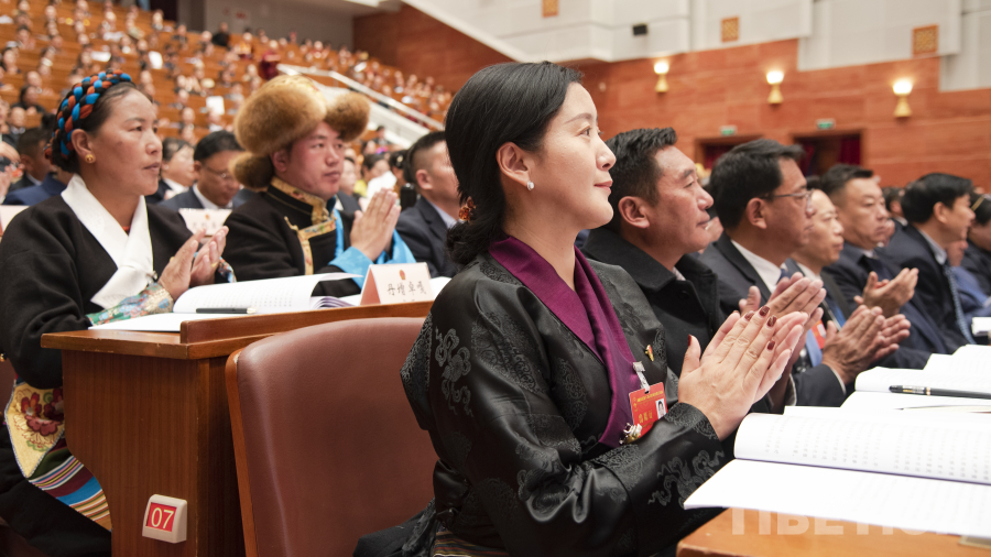 圖為洛桑江村受西藏自治區(qū)人大常委會委托作西藏自治區(qū)人民代表大會常務委員會工作報告 攝影:趙振宇