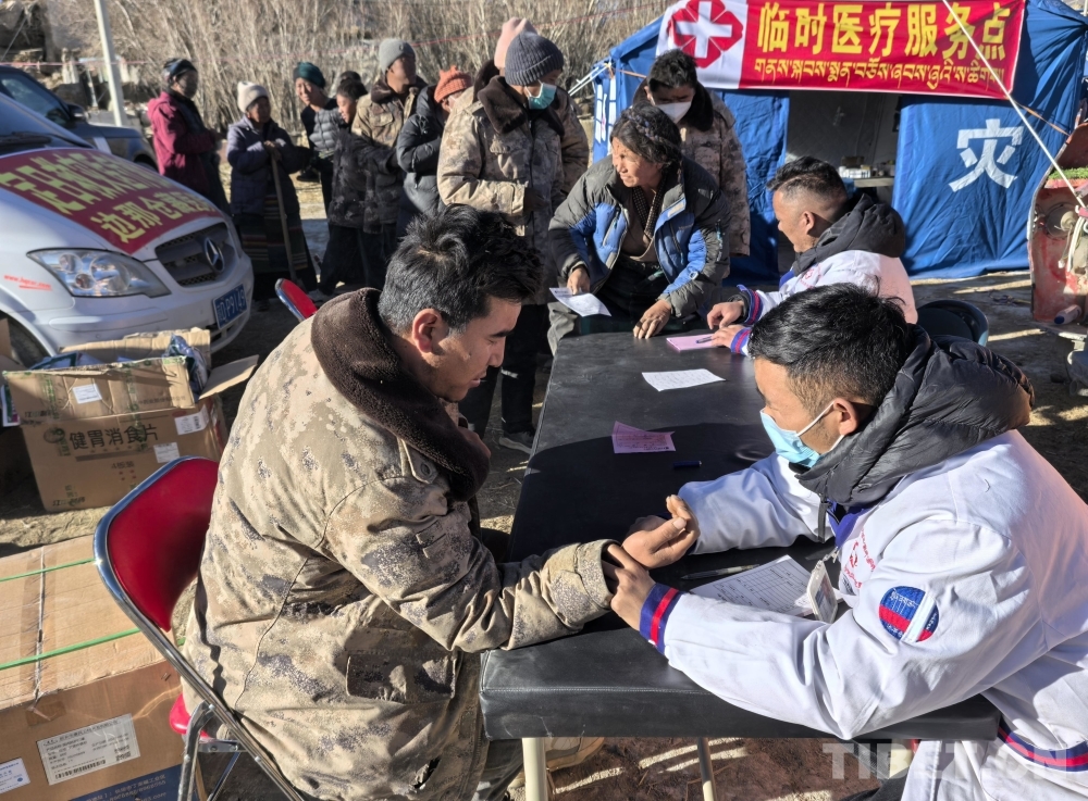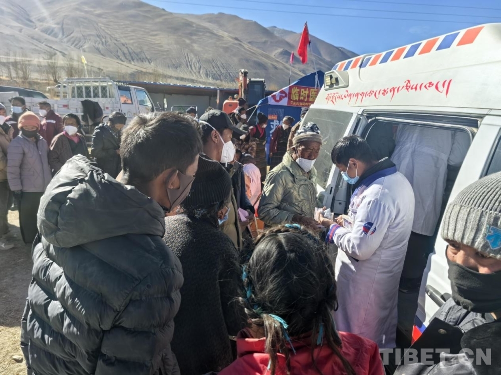 圖為日喀則邊那倉(cāng)藏醫(yī)院醫(yī)護(hù)人員為災(zāi)區(qū)群眾巡診問診