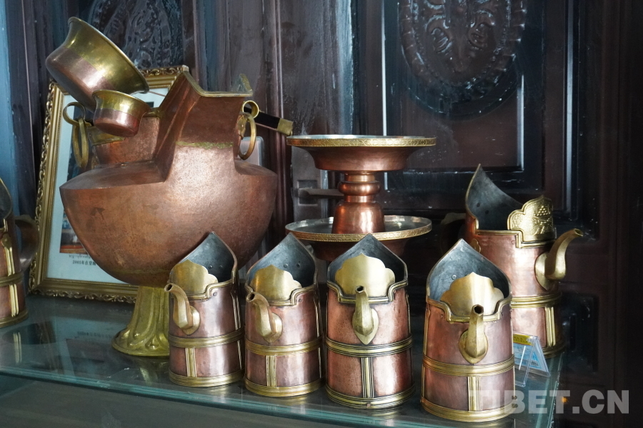 此外,孜東銅器歷代傳承人積極參與文物修復(fù)工作,以匠心之手,撫觸歷史的痕跡。2012年起,列旦桑布和工人們一起參與了西藏自治區(qū)博物館、羅布林卡,以及薩迦寺等單位及寺院的銅器文物維修工作。讓沉睡的千余件銅器文物在時(shí)光中蘇醒,重現(xiàn)了西藏輝煌滄桑的歷史歲月,用愛與責(zé)任守護(hù)著中華民族的寶貴遺產(chǎn)。