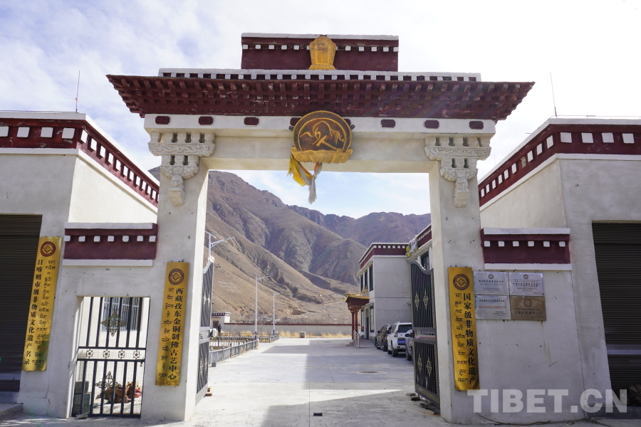 中國西藏網(wǎng)訊 冬日的早晨,西藏自治區(qū)日喀則市南木林縣艾瑪鄉(xiāng)深處不時(shí)傳出叮當(dāng)?shù)那宕啻驌袈暎@是西藏孜東金銅制佛古藝中心的學(xué)徒們正在打造新的作品。