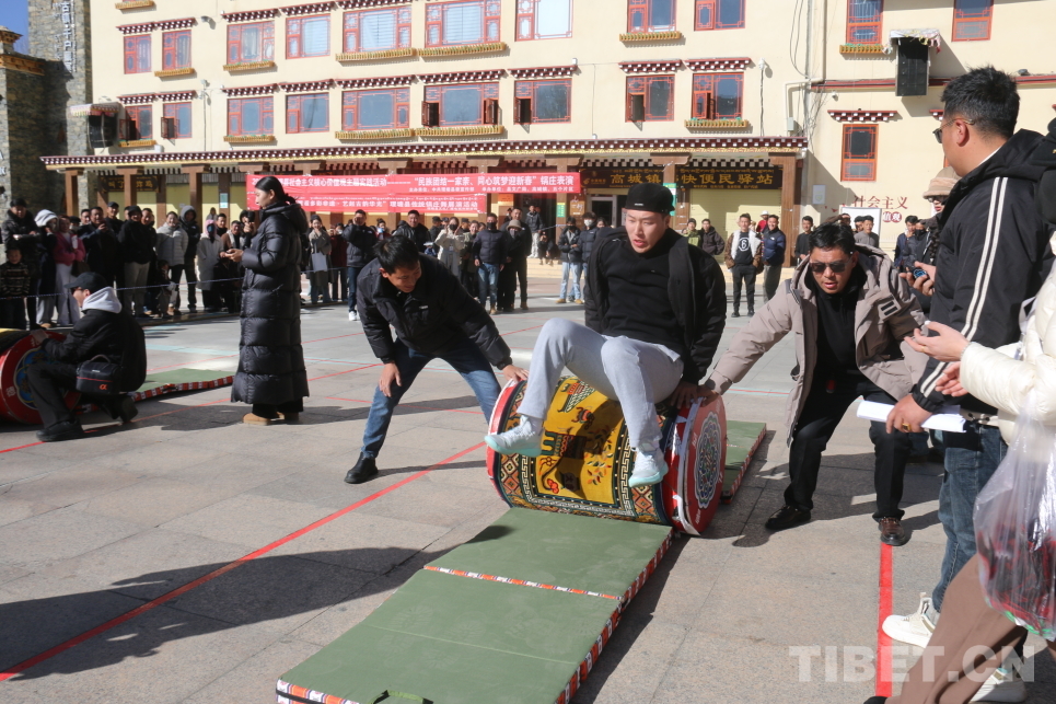 “加油,加油!”歡呼聲不絕于耳,在廣場中央的趣味民俗體育區(qū)域,縣教育體育局舉辦了民族傳統(tǒng)體育項目“格吞”(藏式拔河)和“翻山越嶺”障礙賽、“袋鼠跳”接力賽、踢毽子等豐富多樣的比賽項目,三百多名圍觀群眾踴躍報名,分組參與,盡情體驗體育活動帶來的歡樂和激情。
