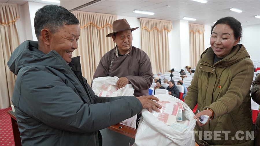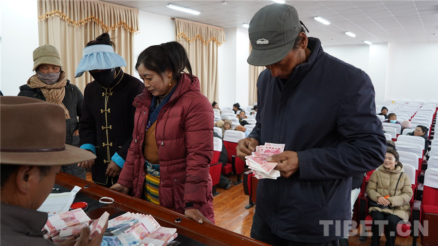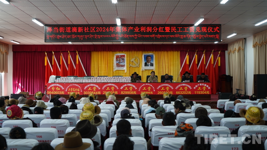 圖為西藏自治區(qū)山南市澤當(dāng)街道滴新社區(qū)2024年集體產(chǎn)業(yè)利潤(rùn)分紅暨民工工資兌現(xiàn)儀式現(xiàn)場(chǎng)