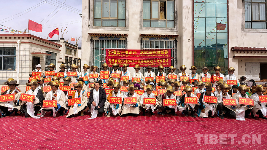 圖為定結縣定結鄉(xiāng)雜興村集體經濟收入分紅儀式現(xiàn)場