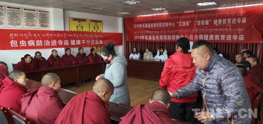 圖為石渠縣疾控中心走進(jìn)寺廟做傳染病防治宣傳 受訪者供圖