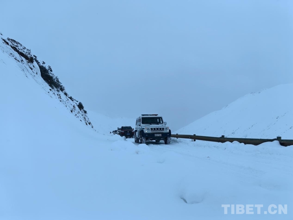 在車隊(duì)攀爬益秀拉山的途中,民警們與中交集團(tuán)一公局保通隊(duì)人員,手持鐵鍬將積雪鏟至路邊,指揮車輛緩慢謹(jǐn)慎行駛。當(dāng)車隊(duì)駛?cè)胛kU(xiǎn)路段時(shí),民警更是將速度降至最低,緊緊盯著道路兩旁的雪山,不放過任何一處可能出現(xiàn)危險(xiǎn)的細(xì)微變化。
