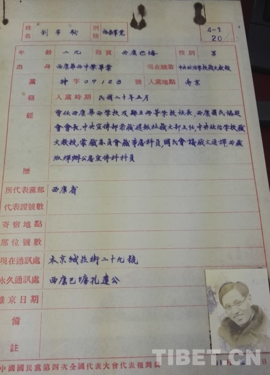 1931年,劉家駒加入中國國民黨,成為早期藏族黨員之一。他不僅出席了中國國民黨四中全會(huì),還參加了國民政府在洛陽召開的國難會(huì)議,并將自己的著作《康藏的過去和現(xiàn)在》分發(fā)給與會(huì)人士,大聲呼吁大家重視康藏工作。同年11月21日,“西康旅京同鄉(xiāng)國防救亡會(huì)”成立,劉家駒被選舉為會(huì)長,在9名執(zhí)行理事中,有6名是藏族,分別為劉家駒(格桑群覺)、江安西(洛松鄧珠)、馬定西、佛平西、楊紹西、馮云仙(女)?!秶勚軋?bào)?名人錄》第8卷20期專門對(duì)時(shí)年29歲的劉家駒進(jìn)行了介紹。此時(shí)的他,已經(jīng)是中央政治學(xué)校(蒙藏政治訓(xùn)練班)的藏文教授,在教育領(lǐng)域發(fā)揮著重要作用,為培養(yǎng)了解藏族文化和語言的人才貢獻(xiàn)力量,為邊疆治理提供智力支持。