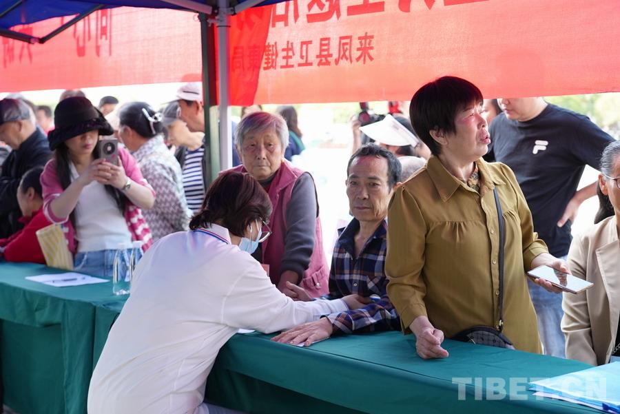 中國西藏網(wǎng)訊 4月18日,“同心·共鑄中國心”大型公益醫(yī)療服務(wù)活動走進湖北省恩施土家族苗族自治州來鳳縣。來自北京的10名醫(yī)療專家組成的聯(lián)合義診團隊,在喳西泰廣場為當?shù)厝罕娞峁┙】底稍?、疾病篩查及個性化診療服務(wù)。活動現(xiàn)場,專家們耐心解答群眾健康問題,針對常見病、慢性病進行細致篩查,并提出專業(yè)診療建議。(中國西藏網(wǎng) 記者/蘇洋)