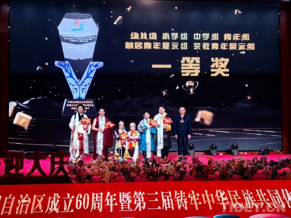 圖為第三屆西藏青少年鑄牢中華民族共同體意識主題演講大賽總決賽暨頒獎典禮上,一等獎頒獎現(xiàn)場 攝影:王淑