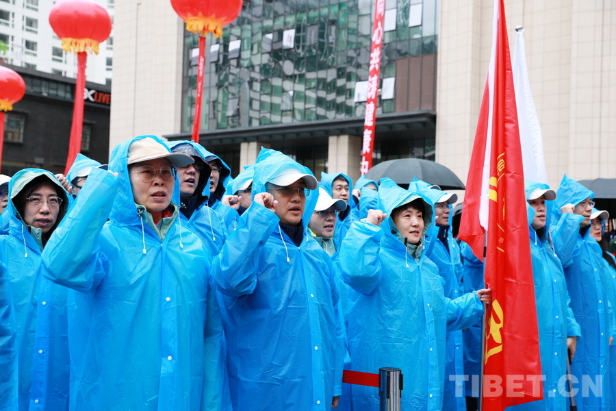 圖為5月16日,在“同心·共鑄中國(guó)心”2025阿壩行大型健康公益綜合服務(wù)活動(dòng)啟動(dòng)儀式上,首都醫(yī)科大學(xué)北京世紀(jì)壇醫(yī)院黨委書記周建新同志帶領(lǐng)醫(yī)務(wù)志愿者宣讀志愿服務(wù)誓詞 攝影:劉莉