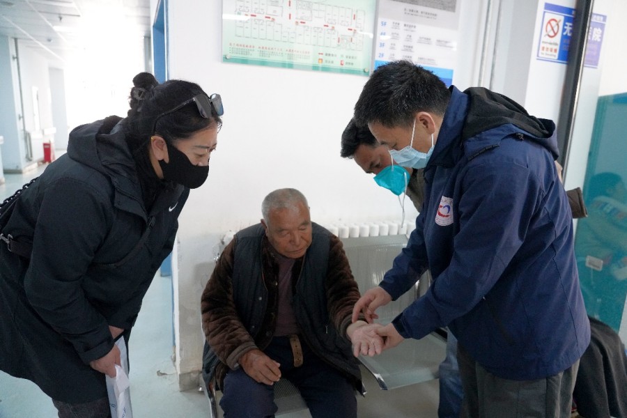 一日,羅讓甲央得知當?shù)卣l(fā)布了一則通知:首都醫(yī)療專家團隊將赴阿壩縣開展義診活動。得知這一消息,老人激動不已,他這次下定決心,一定要請專家們?yōu)樗槊鞑∫?,相信他們能妙手回春,解除他的病痛。自那以后,他便日日期盼著專家們的到來,每日守在電視機前,焦急地詢問著:“醫(yī)生們何時能到?是否已臨近?”終于,他盼來了這一天。更巧的是,他的外孫女是當?shù)匾幻t(yī)務工作者,在此次義診中,她擔任了專家團隊的翻譯工作。