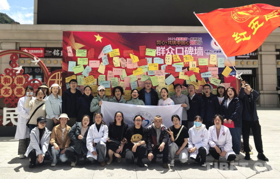 圖為“同心·共鑄中國心”2025阿壩行大型健康公益綜合服務活動四川省阿壩州首府馬爾康市義診點的醫(yī)療專家們義診結束后在群眾口碑墻前留影 攝影:吉文革