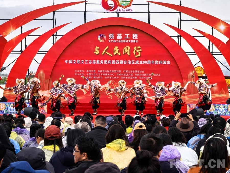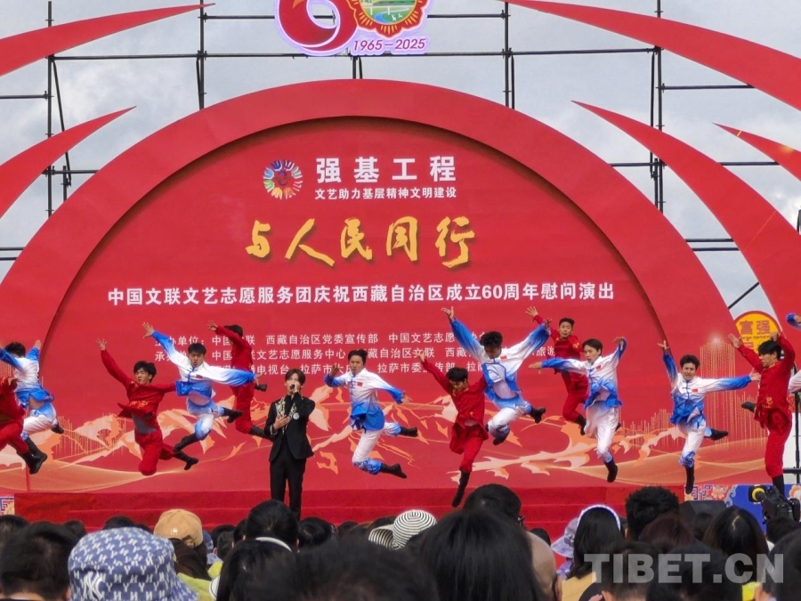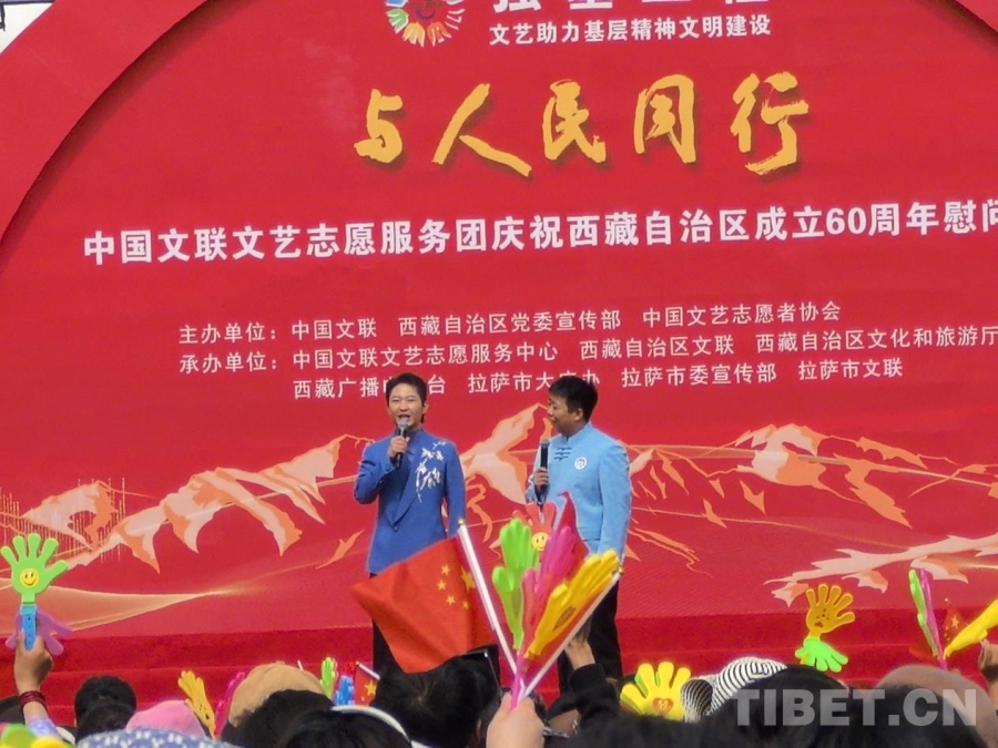 中國西藏網(wǎng)訊 5月25日上午,由中國文聯(lián)、西藏自治區(qū)黨委宣傳部、中國文藝志愿者協(xié)會共同主辦的慶祝西藏自治區(qū)成立60周年慰問演出“與人民同行”在拉薩會展中心廣場舉行,4000多名干部群眾一同觀看演出。