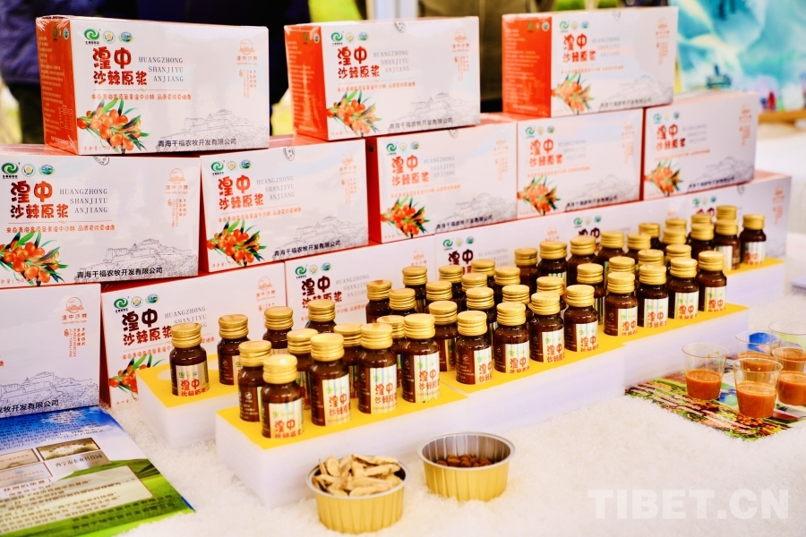 圖為當?shù)氐奶厣r(nóng)產(chǎn)品“沙棘原漿” 攝影:龍真多吉