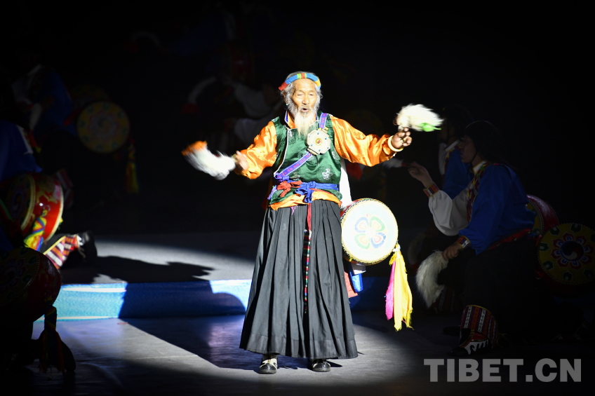 圖為山南卓舞《吉祥卓舞》,81歲的卓舞國(guó)家級(jí)代表性傳承人尼瑪老人登臺(tái)表演 攝影:趙振宇