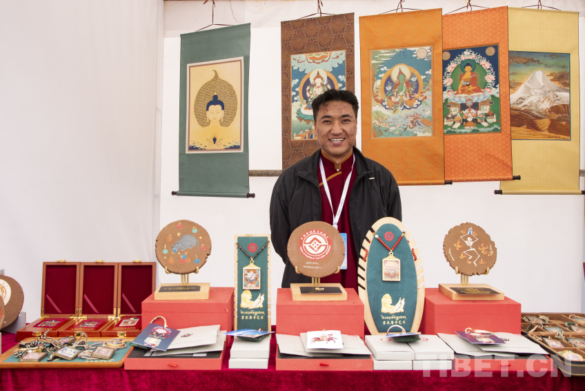 在集市的另一頭,是昌都市瑪吉阿媽唐卡畫院所展出的唐卡漆畫?!捌岙嬀哂欣L畫和工藝的雙重屬性。我們畫院主要是傳承嘎瑪嘎赤畫派的藝術(shù)作品,但近年來我們將傳統(tǒng)畫派藝術(shù)和福建漆畫進行了有機結(jié)合,以漆畫的工藝結(jié)合唐卡的審美,創(chuàng)作出一系列作品。這些唐卡漆畫不僅在西藏很受歡迎,也有其他省份的人士向我們定制。”多吉告訴記者,每一件唐卡漆畫都融合了西藏傳統(tǒng)故事、傳說等文化內(nèi)涵,不僅是一件藝術(shù)品,更是向外界展示西藏優(yōu)秀傳統(tǒng)文化的窗口。