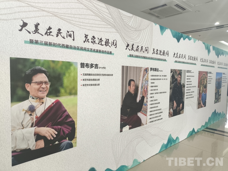 6月20日,“大美在民間——名家進校園暨第三屆新時代西藏自治區(qū)民間文藝名家新創(chuàng)作品展”開展。圖為展覽陳列 攝影:趙釗