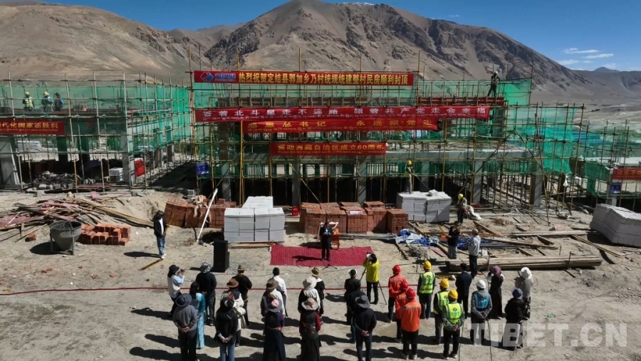 面對海拔4300多米的高寒缺氧、烈日風沙,施工團隊日夜奮戰(zhàn),克服重重困難,終于如期完成了全村民房的主體建設(shè)。乃村村民阿瓊說:“經(jīng)施工團隊和各方努力,我家二層住宅今日順利封頂!施工全程進度、質(zhì)量、安全均把控到位,成果令人欣喜。特別感謝施工負責人與工人們!”