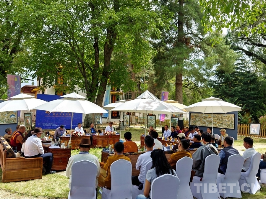 中國西藏網(wǎng)訊 7月27日,“筆尖上的藝術(shù)對話”熱貢藝術(shù)交流會在西藏拉薩羅布林卡舉辦。本次交流會匯聚了熱貢藝術(shù)代表性傳承人、知名藝術(shù)家與西藏唐卡、雕塑等領(lǐng)域的代表性傳承人、藝術(shù)家及學(xué)者,共同探討唐卡藝術(shù)的傳承與創(chuàng)新之路。