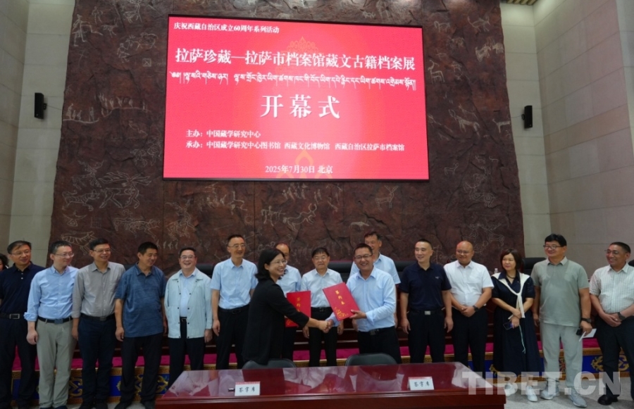 本次展覽由中國藏學(xué)研究中心主辦,中國藏學(xué)研究中心圖書館、西藏文化博物館和西藏自治區(qū)拉薩市檔案館共同承辦。開幕式上,中國藏學(xué)研究中心圖書館與拉薩市檔案館簽署《藏文古籍檔案文獻(xiàn)數(shù)據(jù)共享與開發(fā)利用合作協(xié)議》。(中國西藏網(wǎng) 記者/周晶)