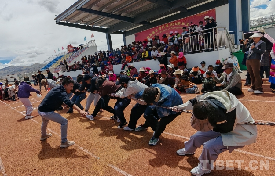 文藝演出落幕,文體活動(dòng)接棒升溫。100米、200米賽道上,選手們?nèi)珉x弦之箭,奔跑中揚(yáng)起的塵土里;拔河繩兩端,隊(duì)員們腳蹬大地、身向后仰,加油的號(hào)子聲震得地上的石子都在跳;抱沙袋、押加項(xiàng)目中,選手們咬緊牙關(guān)、全力拼搏,圍觀群眾的吶喊助威聲浪一波高過一波;穿藏服拌糌粑環(huán)節(jié),大家整理衣襟、系緊腰帶,青稞粉與礦泉水在手中交融,香氣里飄著“共話家常”的溫情……每項(xiàng)活動(dòng)都是一次“心與心的對(duì)話”,讓團(tuán)結(jié)的種子在互動(dòng)中生根發(fā)芽。