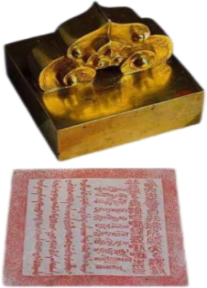 展覽中,37道敕封圣旨與13枚官印沿玻璃展柜鋪展,時(shí)間跨度從元泰定至清光緒,封號(hào)涵蓋“白蘭王”“萬(wàn)戶”“都指揮僉事”“國(guó)師”“大國(guó)師”“大寶法王”“闡教王”“闡化王”“輔教王”“贊善王”“班禪額爾德尼”等。在布展中,工作人員首創(chuàng)“混搭串聯(lián)”的展覽敘事,通過(guò)在不同朝代的皇宮家具上放置對(duì)應(yīng)朝代的皇帝治藏的圣旨與印章,闡明元明清時(shí)期中央政府對(duì)西藏實(shí)施的有效行政管轄。