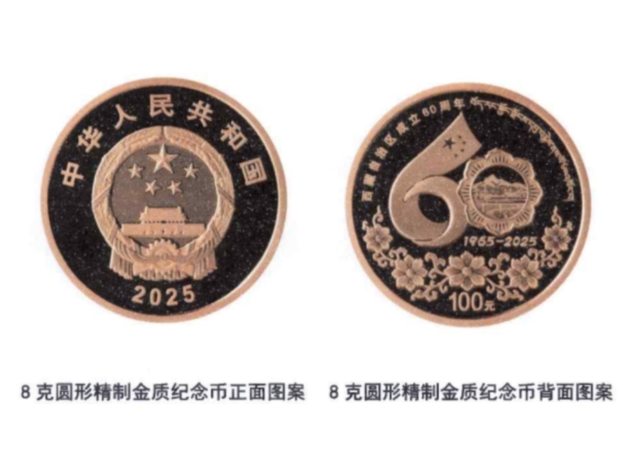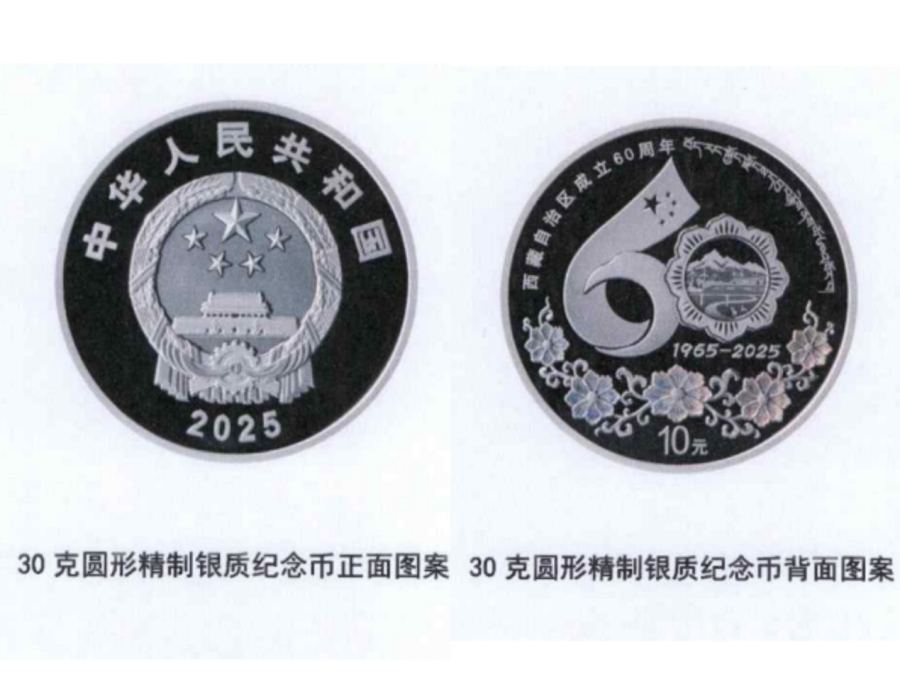 紀念幣正面圖案為中華人民共和國國徽,背面采用西藏自治區(qū)成立60周年慶?;顒踊諛?biāo)為主圖案,配以格?;y飾,并刊有“西藏自治區(qū)成立60周年”國家通用語言文字、藏語言文字字樣及面額。中國金幣集團總經(jīng)理井軍介紹,該套紀念幣采用了浮雕、鏡面、激光噴砂等先進造幣工藝,充分展現(xiàn)了西藏的發(fā)展成就和獨特文化。