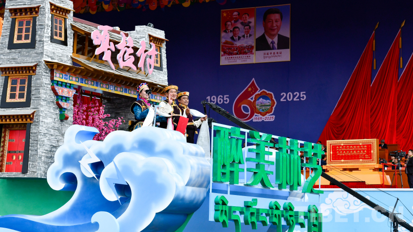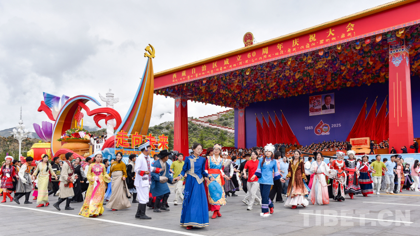 “走向未來”彩車,整體呈現(xiàn)數(shù)字“60”字樣,車身造型融入華表、紅色飄帶、中國結(jié)等元素,彰顯了西藏各族干部群眾奮進(jìn)新征程、建設(shè)團(tuán)結(jié)富裕文明和諧美麗的社會主義現(xiàn)代化新西藏的信心和決心。(中國西藏網(wǎng) 記者/王淑 趙振宇 德吉卓瑪 次旦拉姆 旦曲 賈華加 趙釗 姚浩然 劉莉 邊子捷 馮重霖 楊眉笑)