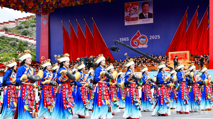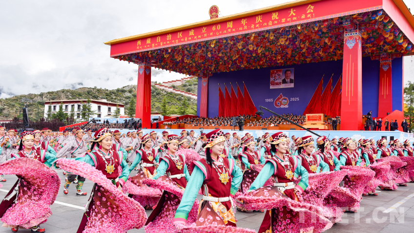 中國西藏網(wǎng)訊 8月21日上午,西藏自治區(qū)成立60周年慶祝大會在拉薩隆重舉行。慶祝大會舉行充滿吉祥喜慶氣氛的盛大群眾游行。游行分為“旗幟引領(lǐng)”“四件大事”“奮進新時代”“走向未來”4個單元,26個群眾游行方隊、彩車,在歡快的音樂中依次行進。各族群眾身著絢麗多彩的服飾,跳起熱情歡快的舞蹈,表達過上幸福生活的喜悅之情、對黨和國家的感恩之情。(中國西藏網(wǎng) 記者/王淑 趙振宇 德吉卓瑪 次旦拉姆 旦曲 賈華加 趙釗 姚浩然 劉莉 邊子捷 馮重霖 楊眉笑)