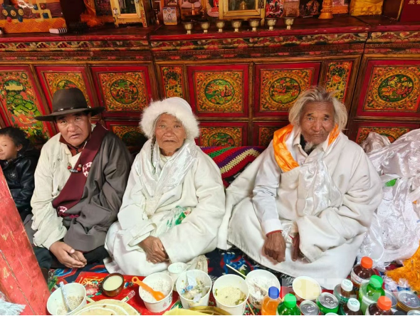 我們家孩子多,年齡都只差一兩歲。媽媽常常懷里抱著才幾個(gè)月大的弟弟,背上還背著剛滿一歲的另一個(gè),就這樣去公社勞動(dòng)。那時(shí)我七歲,老二六歲,日子過(guò)得特別苦。我們只有一頂又小又舊的黑帳篷,白天我們就待在帳篷里等。父母放羊回來(lái),有時(shí)我們?cè)缫言诘厣纤?。吃的東西也很簡(jiǎn)單,只有糌粑,喝的也只是用羊奶做成的奶渣水。現(xiàn)在孩子們稍微冷一點(diǎn)就會(huì)抱怨衣服不夠暖,可那時(shí)候,我們連像樣的衣服都穿不上。雖然家里人多,但真正能勞動(dòng)的少,孩子又都還小。公社按工分分配,我們家不僅掙不夠,還常常欠下不少。一想到父母當(dāng)年受的那些苦,我心里就特別不是滋味。如今只要吃到好吃的,我第一個(gè)想到的就是父母;見(jiàn)到好穿的,第一個(gè)念頭也是他們,總想讓他們也嘗一嘗、穿一穿。